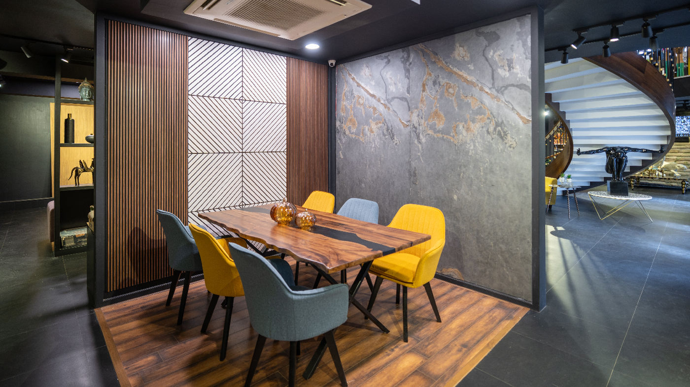At Neeleraa, I believe challenges are opportunities for bold ideas to thrive. With Pillars of Possibilities, an old structure's limitations were transformed into architectural strengths. The visible pillars became sculptural moments, the ceiling breaks enhanced light and scale, and every floor was designed to feel connected yet distinct. This project reflects a belief that commercial spaces can be expressive, colourful, and artistically bold — where structure meets creativity, and possibilities are reimagined with every curve, colour, and corner.